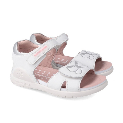 Sandalias fabricadas en piel con tira ajustable sobre el empeine para proporcionar un mejor ajuste al pie sin censurar la libertad de movimiento. En piel lisa con detalle lazo.
