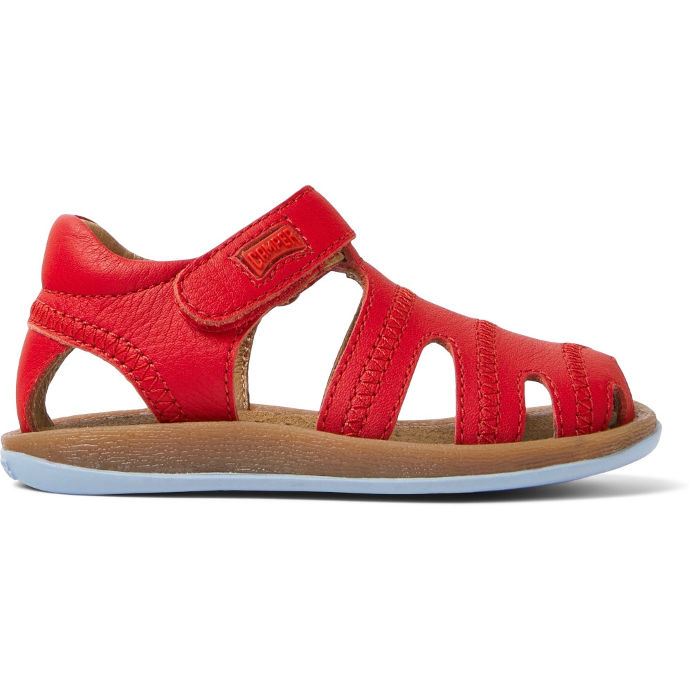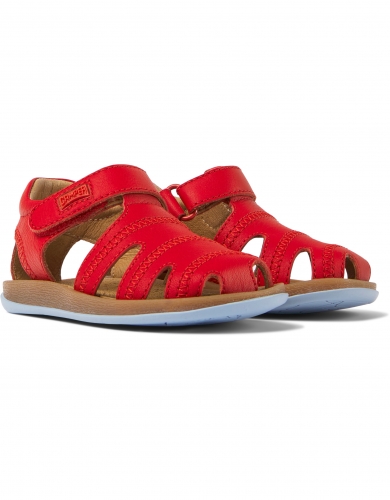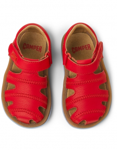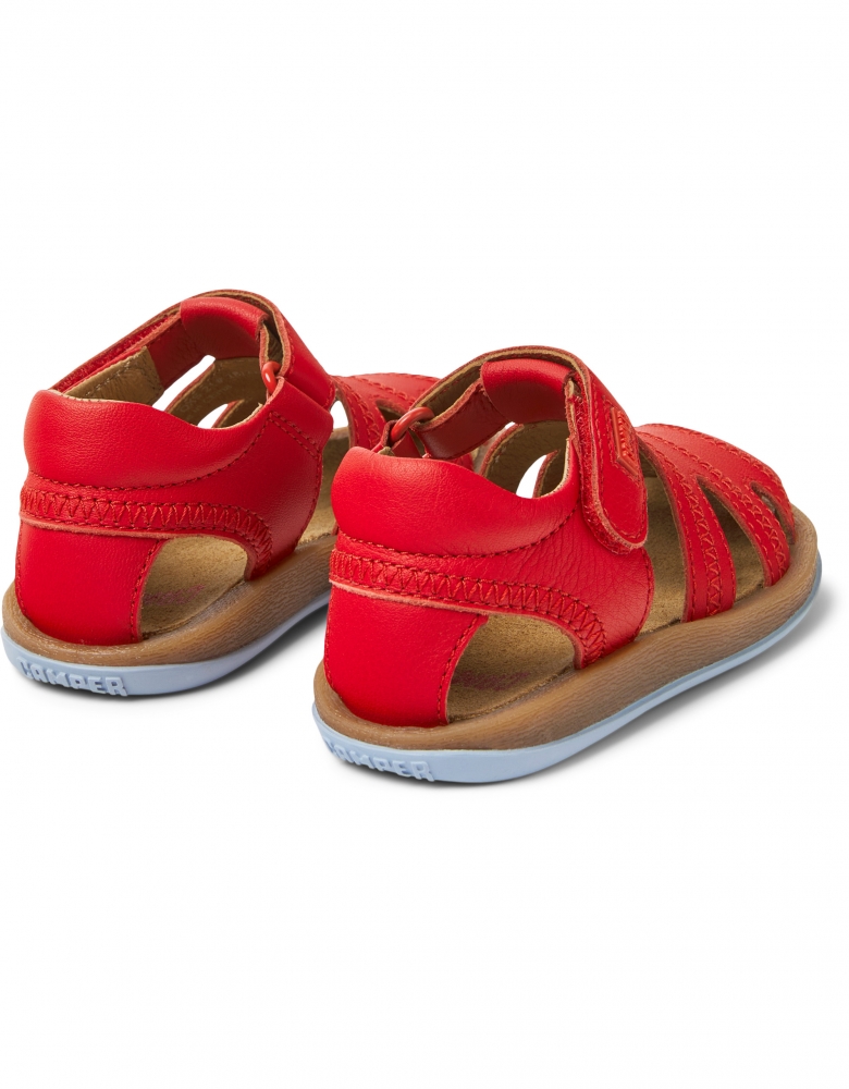 Sandalias rojas de piel para niños con sistema de autocierre y suelas de goma (20% recicladas).