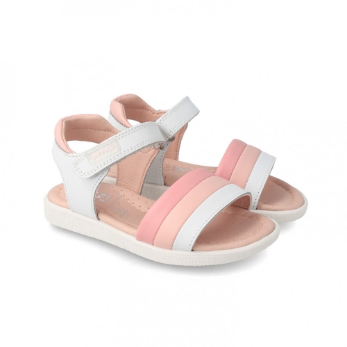 Sandalias fabricadas en piel rosa y blanco.