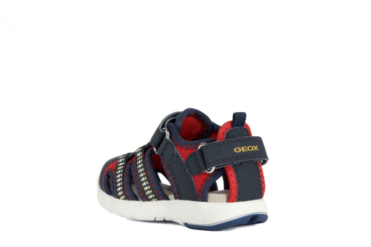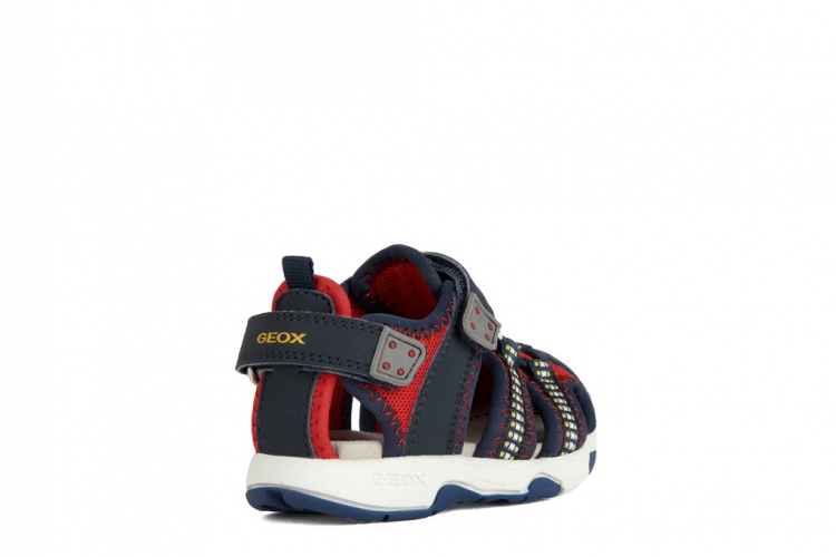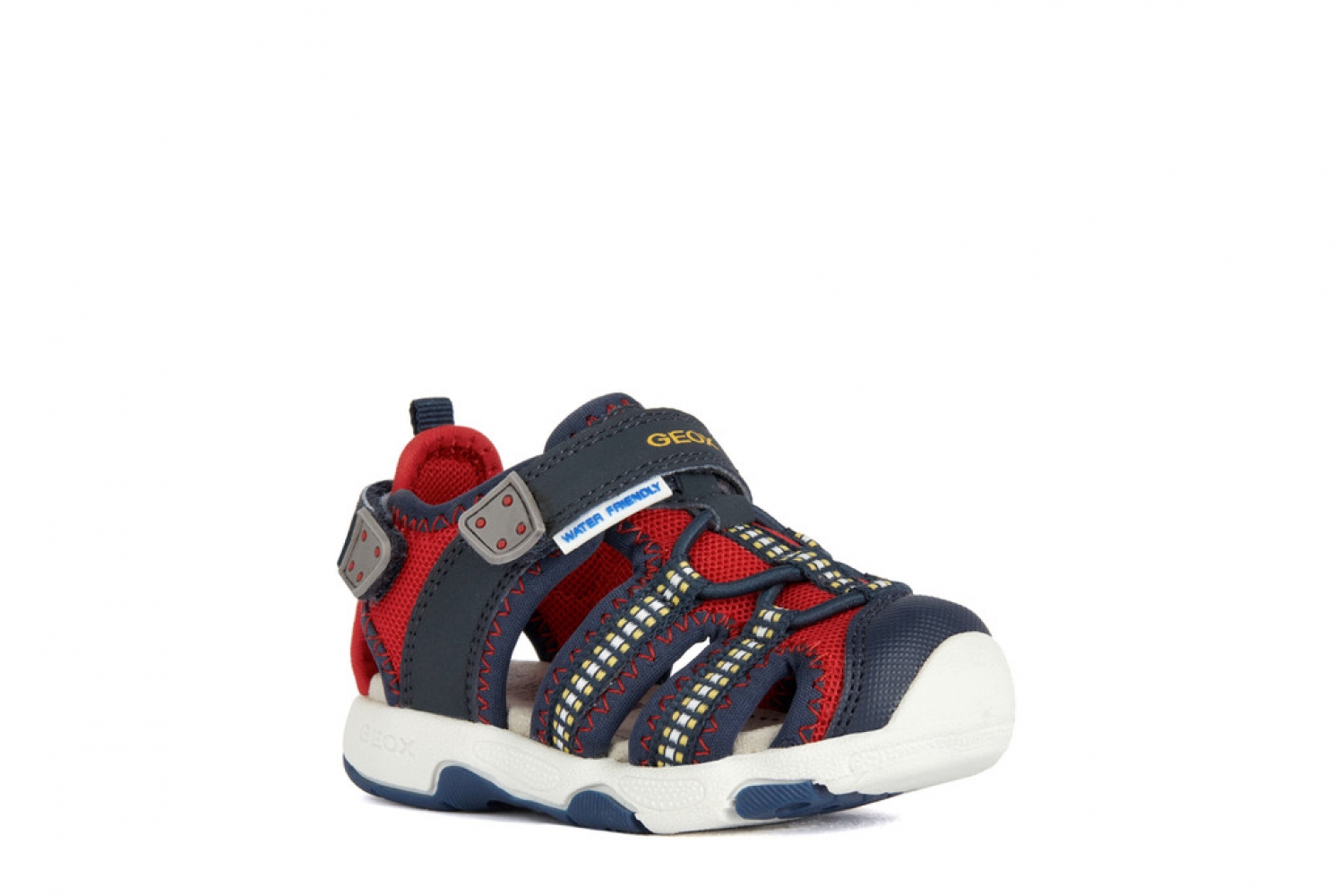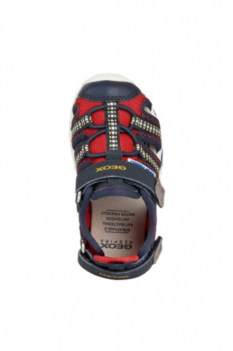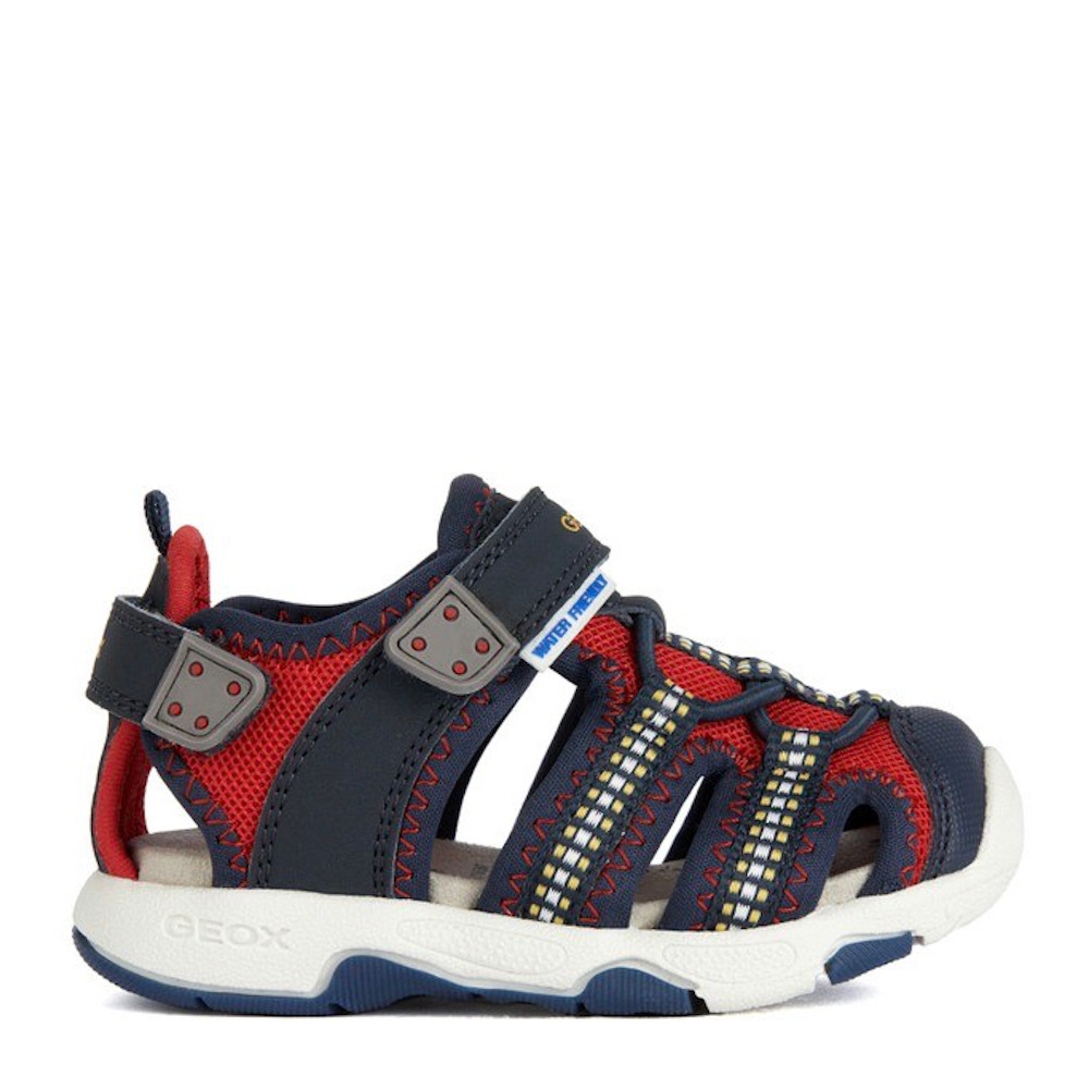 Sandalia de niño de inspiración outdoor, protectora y confortable.Con toda la protección del diseño con punta cerrada, Multy es una sandalia transpirante y water-friendly, particularmente adecuada para las actividades al aire libre, realizada en resistente durabuck y malla en los tonos del azul marino y rojo.