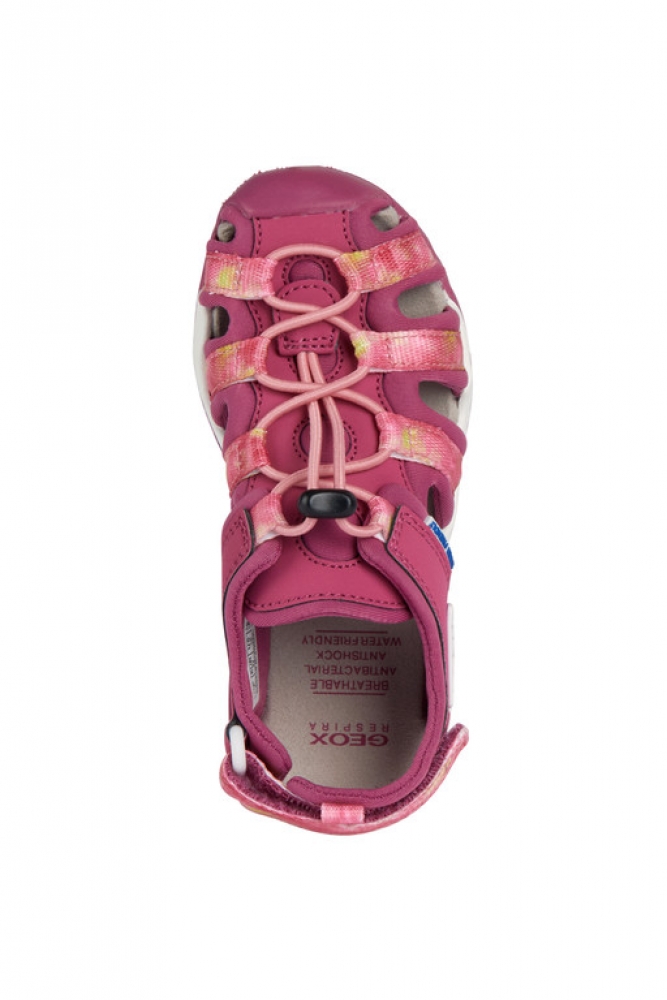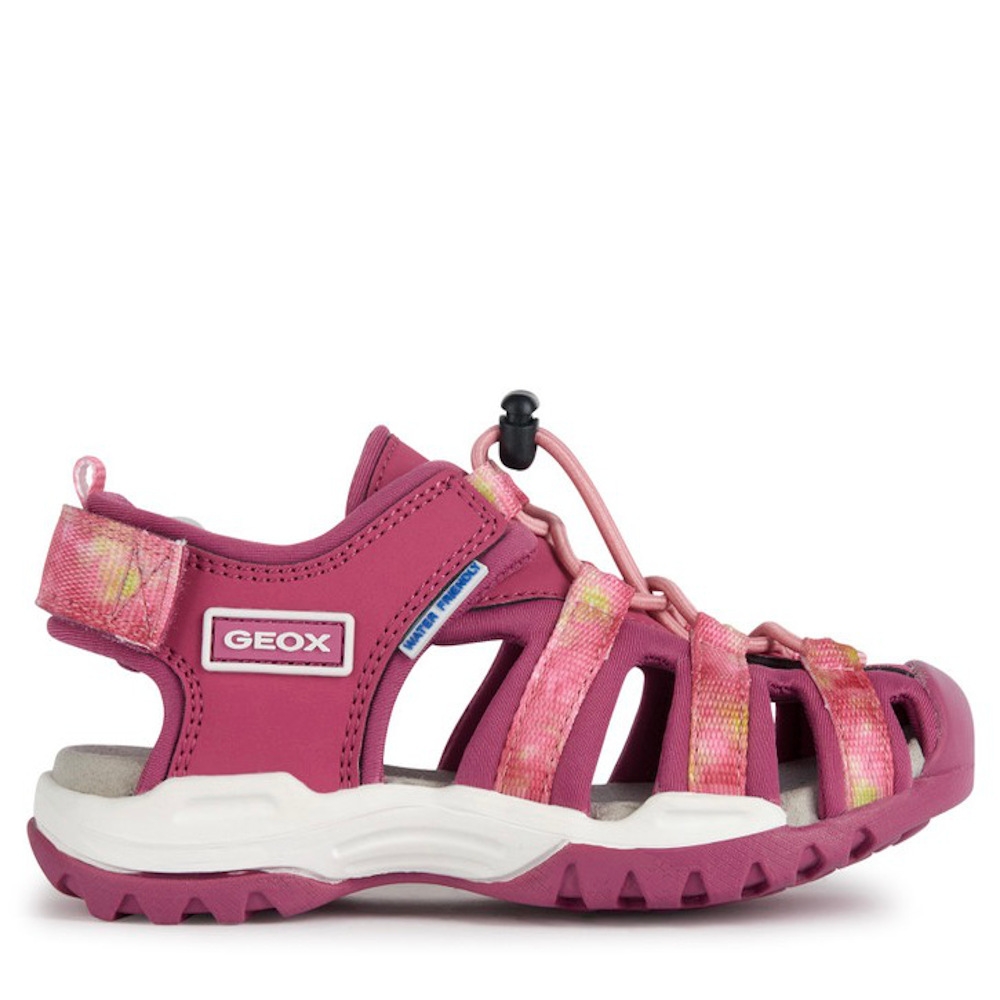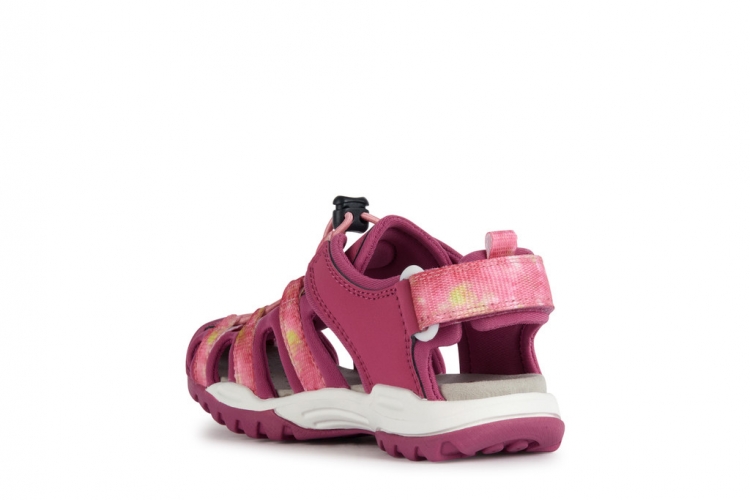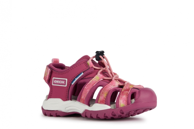 Sandalia de niña deportiva e informal de diseño outdoor, ideal para las aventuras de verano. Ligera, transpirable y resistente al agua, presenta una empella semicerrada y completamente regulable que combina el color gris y negro con toques rosas. Realizada con material efecto piel y lycra, Borealis cuenta con una punta reforzada que protege contra golpes e impactos junto con una suela de elevada adherencia incluso en terrenos resbaladizos.