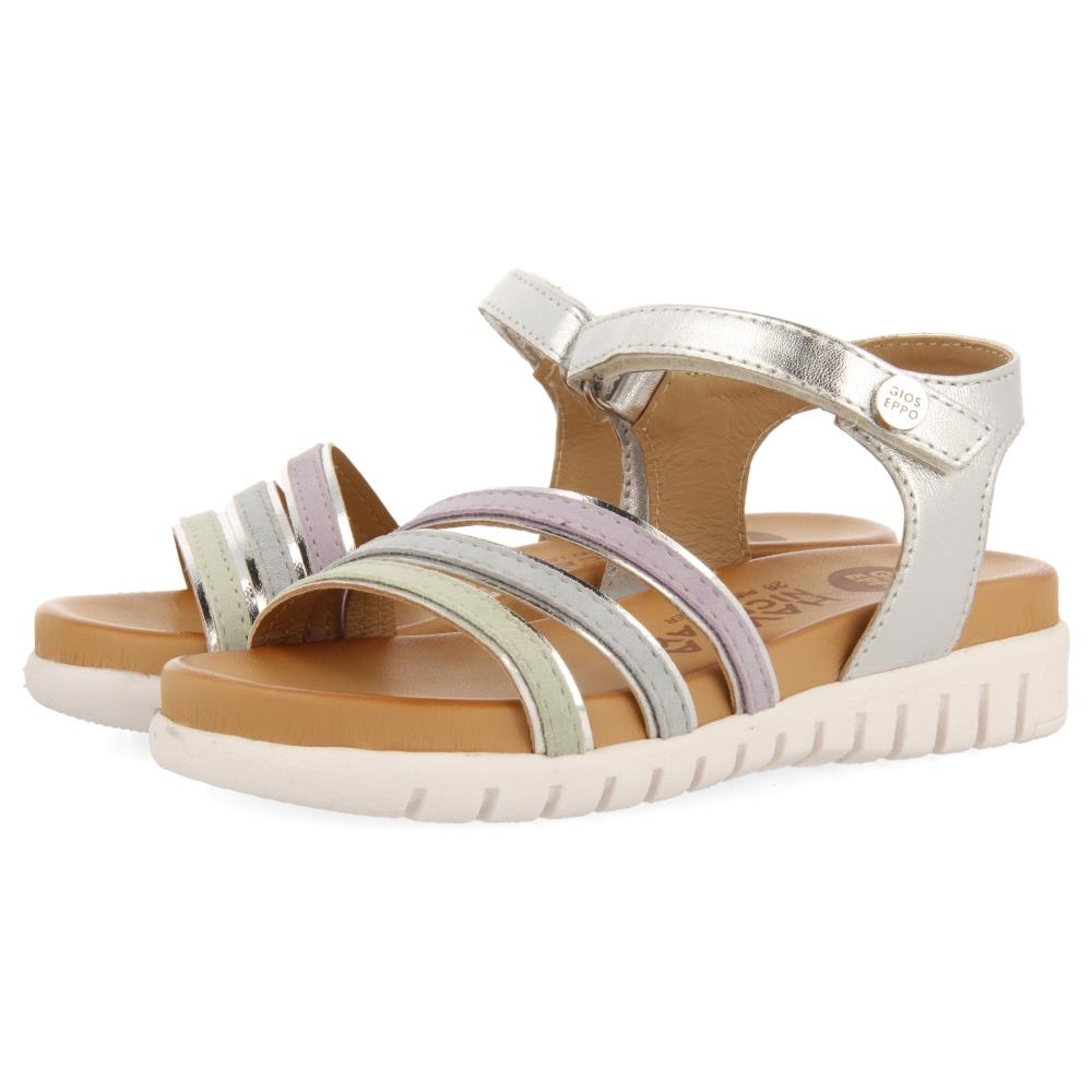 Para brillar todo el verano! Sandalias multicolor de piel tipo ante con vivos metalizados en plata. Talón metalizado y tira ajustable/regulable. Suela blanca con volumen. La plantilla es anatómica en piel suave muy acolchada con planta de látex. El forro es en piel y el piso TPR muy flexible. Plantilla anatómica en piel suave. Plantilla muy acolchada. Planta de látex. Forro en piel. Piso TPR muy flexible.