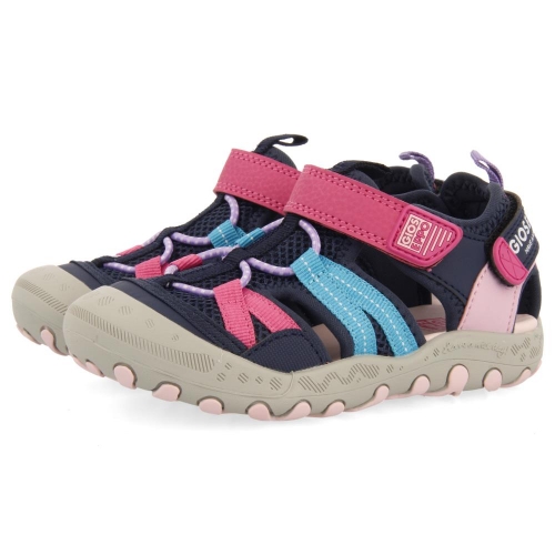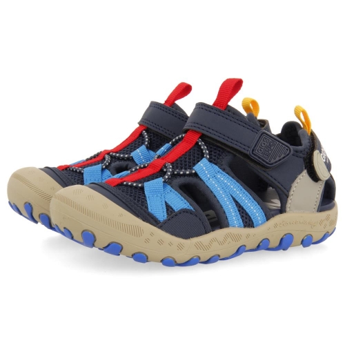 Sandalias deportivas multicolor estilo californianas con cierres ajustables. Combinan materiales muy ligeros como el nylon, el neopreno y el poliéster. La plantilla es acolchada y la suela presenta acentos de color.