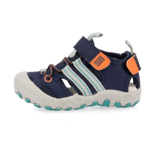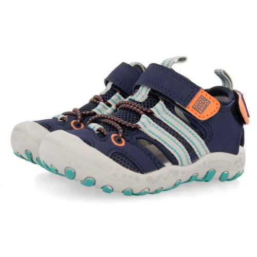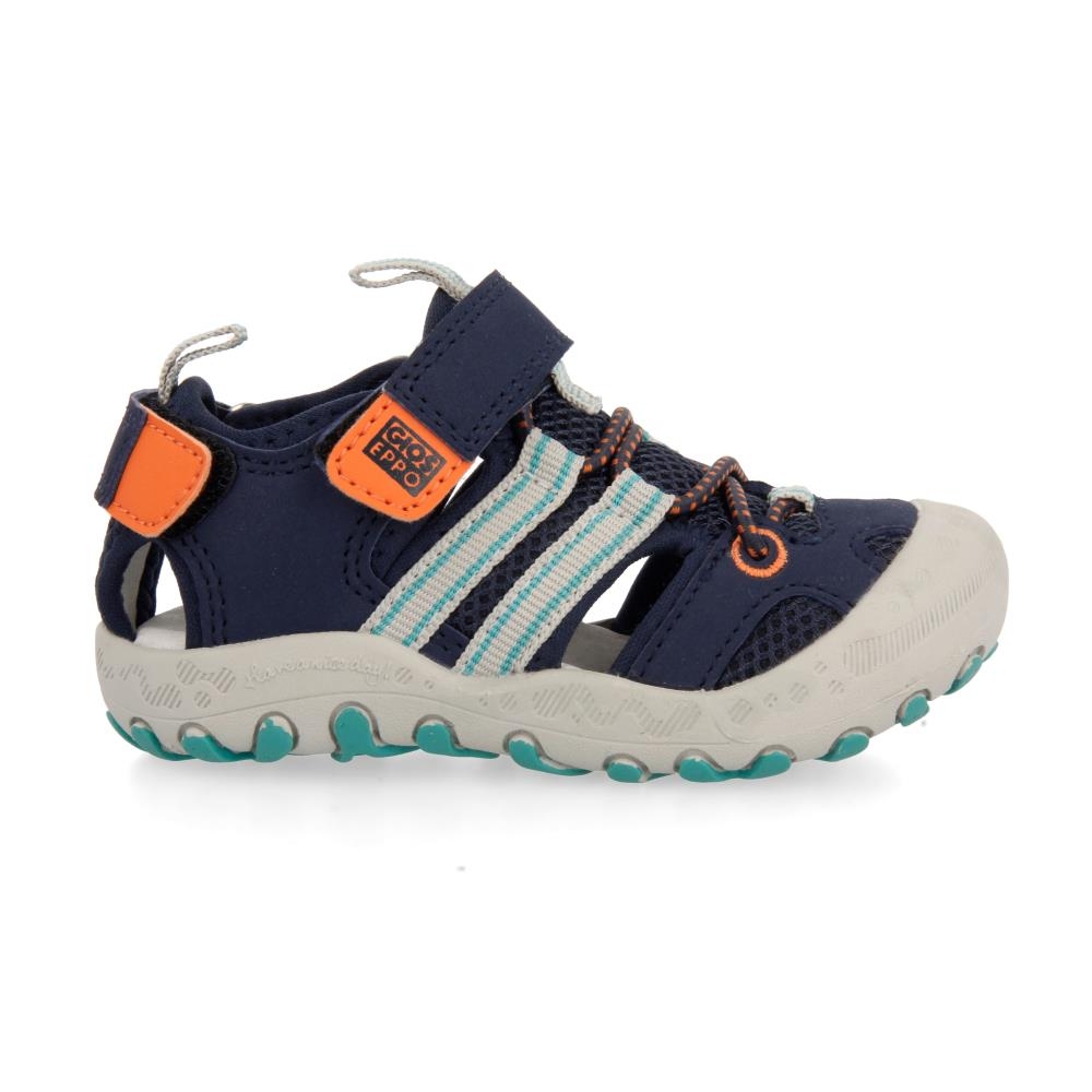 Chanclas deportivas. Cuentan con cierre de velcro al tobillo, delantero y trasero para asegurar la mejor sujeción del pie y facilitar el calce. La puntera está reforzara para proteger los dedos de los más peques asegurando una buena ventilación.