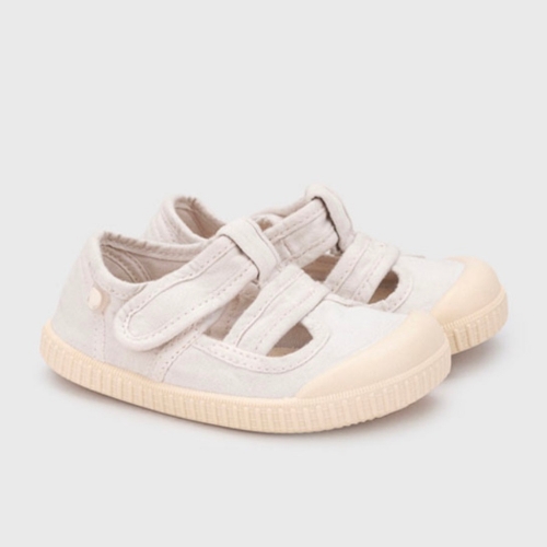 Sandalia cangrejera de lona 100% algodón, de concepto barefoot wide, con la puntera mucho más ancha, cero drop, flexible, blandita y plantilla extraíble. Lavar en agua fría no sin antes extraer la plantilla.