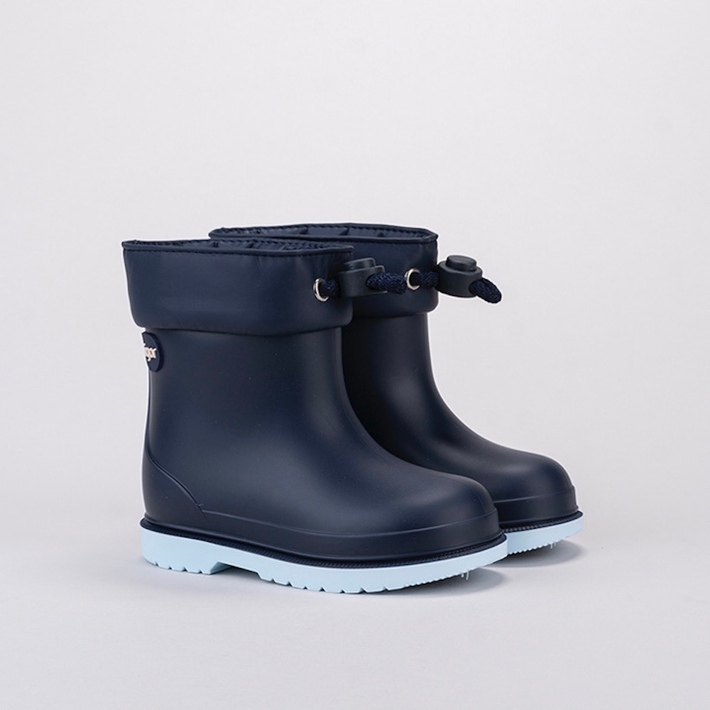 Bota corta de agua bicolor en acabado mate, con cordón ajustable en el cuello, plantilla extraíble y forro textil.