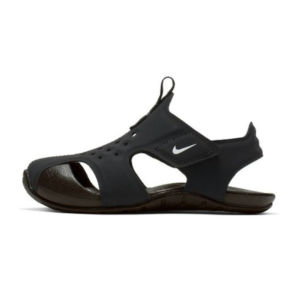 Las sandalias Nike Sunray Protect 2 ofrecen una protección total en la puntera y tracción en la suela exterior perfecta para jugar en el exterior. Las cintas con veta adherente hacen que sean fáciles de poner y quitar, y las aberturas en la parte superior favorecen la circulación del aire cuando se acumula el calor en los pies.