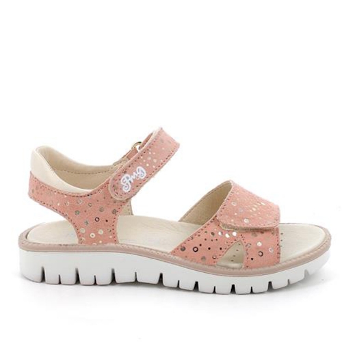 Sandalia de la marca Primigi de color rosa con dos velcros ajustables.