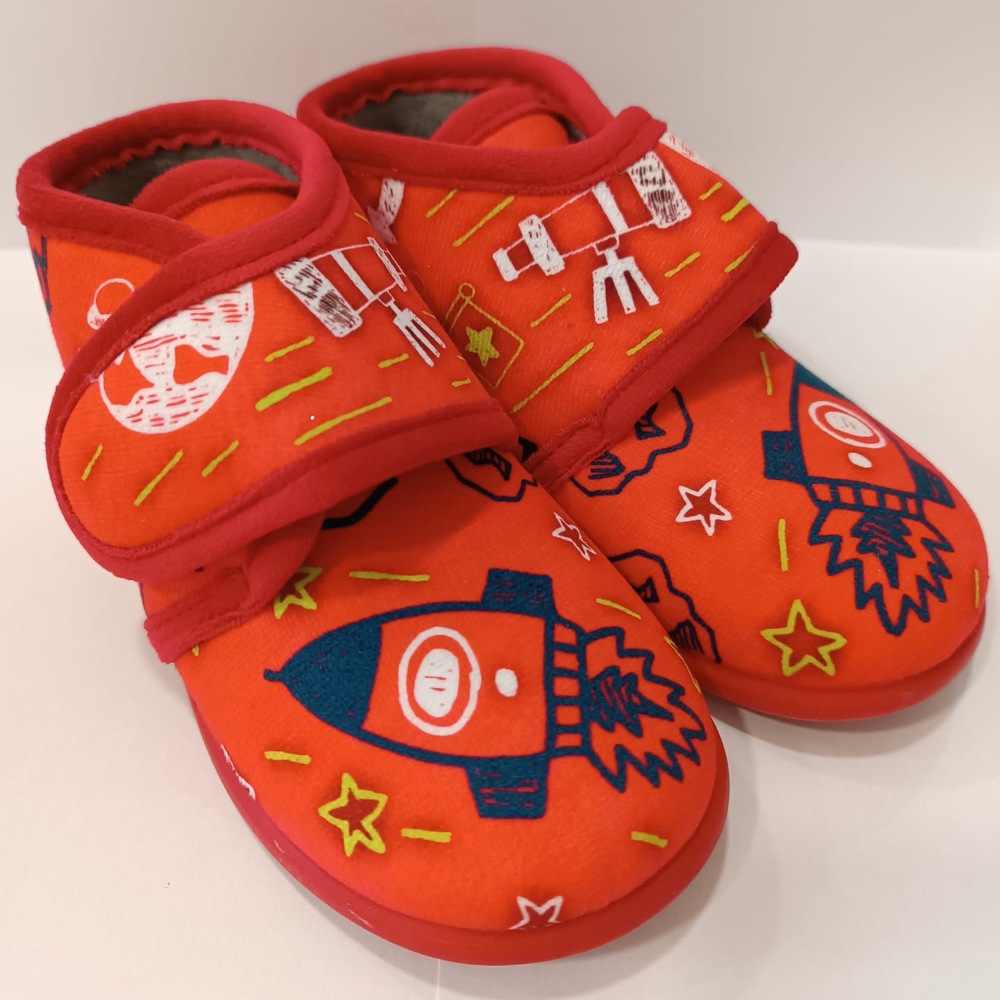 Zapatilla cerrada de velcro. Piso de goma antideslizante. Fabricado en España.
