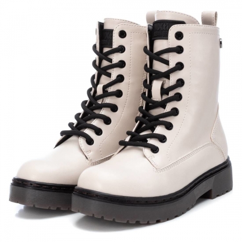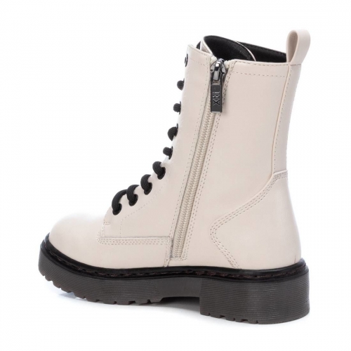 Botín de niña, de la marca Xti Kids. Fabricado en material que imita la piel. Cierre a cremallera con tirador trasero. Cordones al tono para un mejor ajuste a la pierna. Gruesa suela de goma antideslizante. Este modelo ha obtenido el certificado vegano por la organización mundial PETA (Organización de los derechos de los animales).